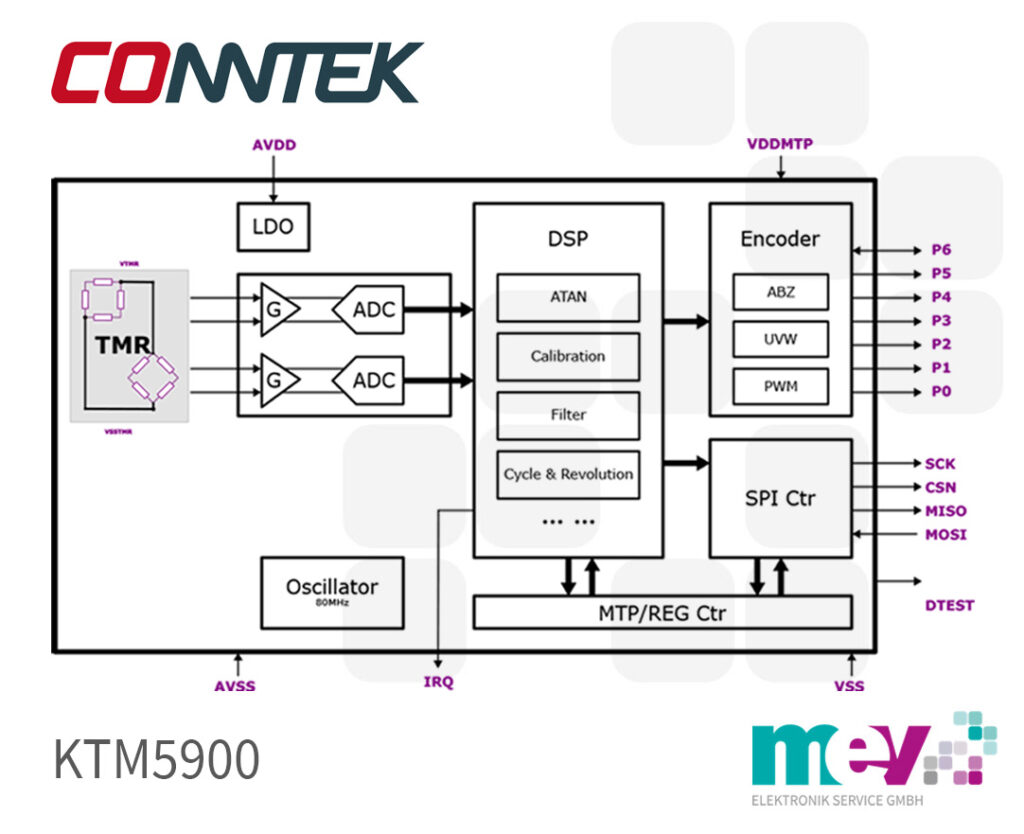 Besonderer Wert wurde beim KTM5900 auf die funktionale Sicherheit gelegt. So gibt es für die SPI-Übertragung der Winkel-Werte eine 8-Bit-CRC-Verifizierung und es sind viele Selbstdiagnose-Alarmfunktionen implementiert.