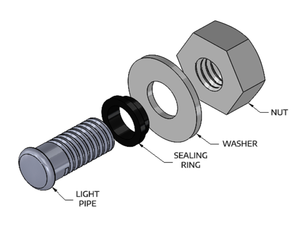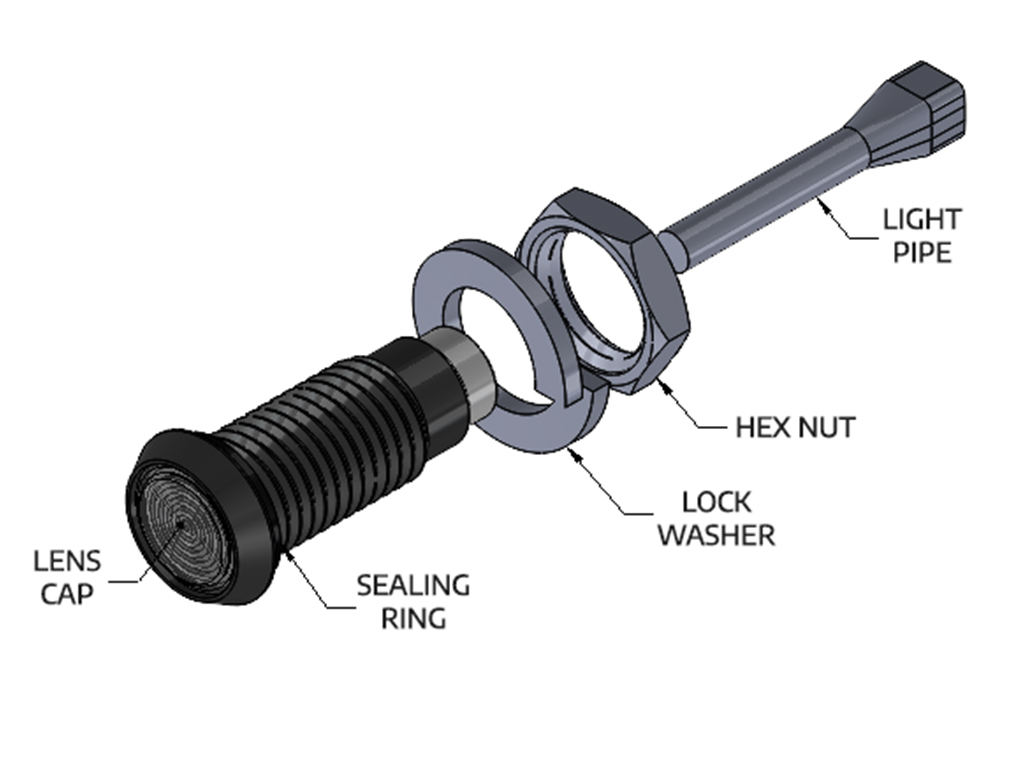 PLTR Das starre Lichtrohr mit Presspassung zur Frontmontage verfügt über eine Gewindehalterung, die bei ordnungsgemäßem Anziehen mit einem Drehmomentschlüssel einen sicheren Sitz für den Schutz in rauen Umgebungen bietet.
