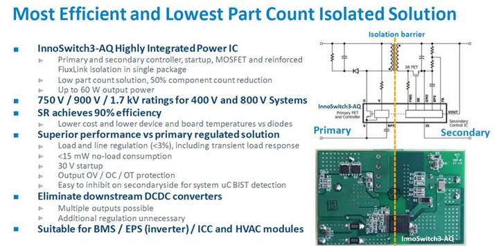Der Controller arbeitet Quasi-Resonant und auf der sekundär Seite mit einem synchronen MOSFET oder einer Diode, je nach Wunsch. Die galv. Trennung ist im IC mit integriert und die Kommunikation läuft über ein induktives Protokoll (FluxLink Technologie).